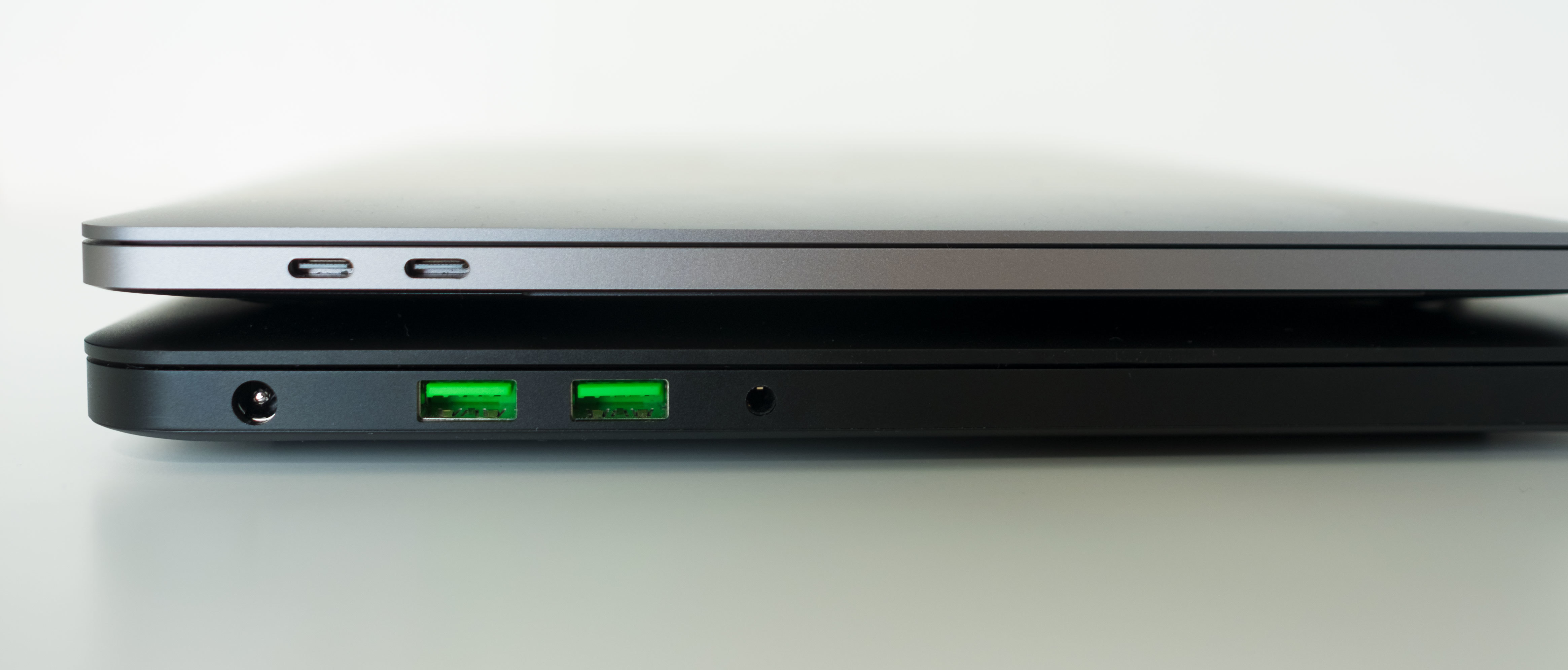 Think of the Razer Blade as a slightly thicker, beautiful black MacBook Pro: they almost look the same, but it's a little bigger to accommodate what's going on under the hood.