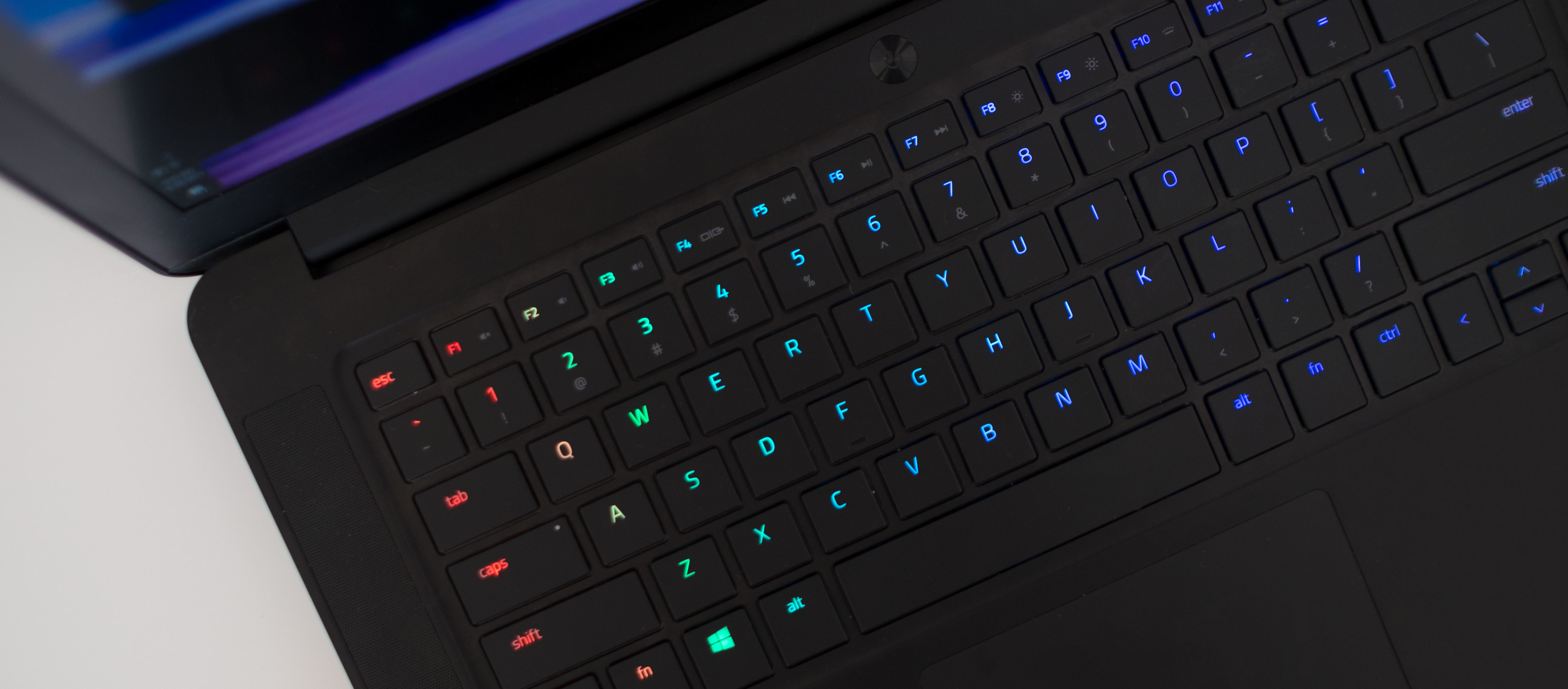 Razer's keyboard, which is more mechanical feeling, was the very first thing I noticed when I opened the box. It's heaven to use a real keyboard in a laptop that's not bulky; the keys have a lot of travel despite how compact they are, and everything's right where you'd expect it to be.