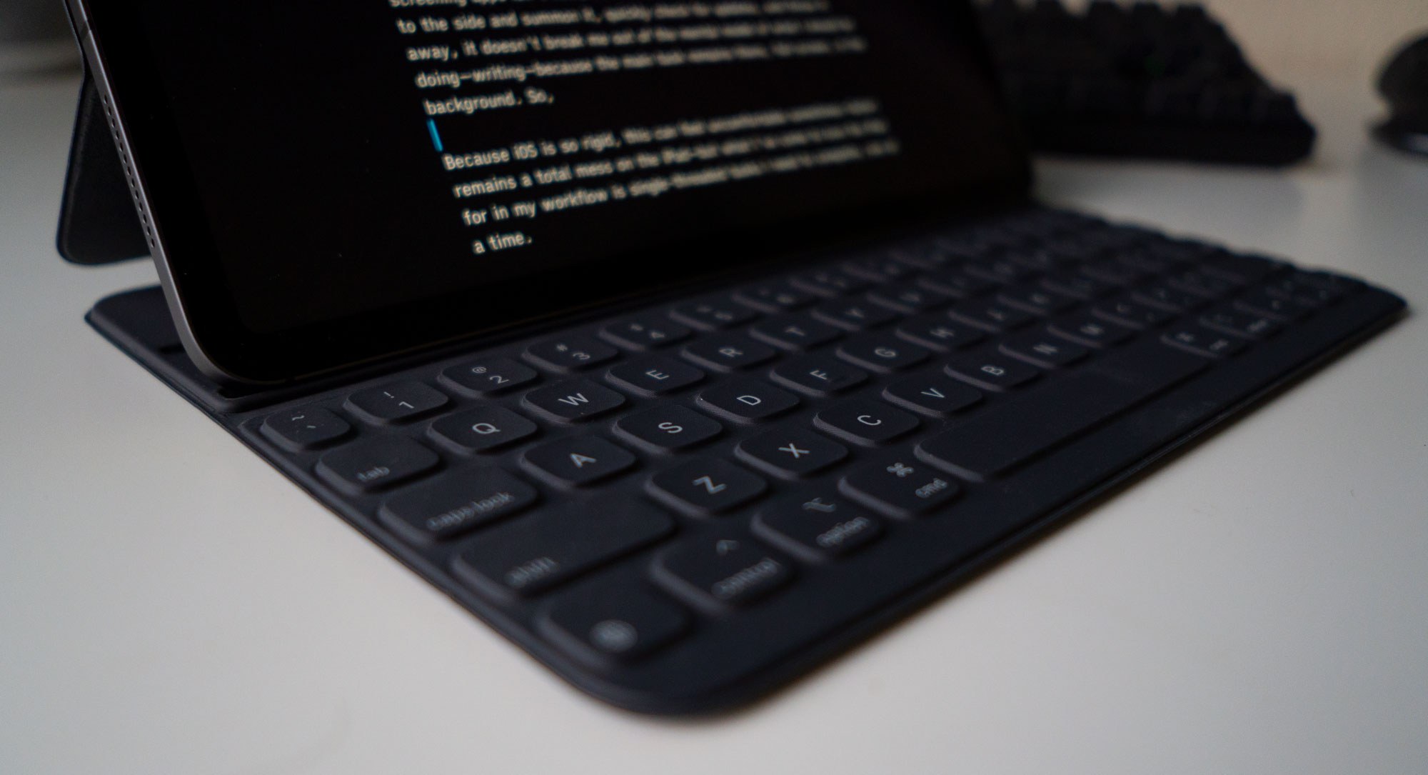 I've tested a lot of computers for getting work done, but the majority of my day job involves writing words—not code—which is a perfect fit for the iPad Pro. It feels backwards to say it, but because the iPad doesn't have multiple floating windows, and no mouse, I'm able to focus on on thing at a time.